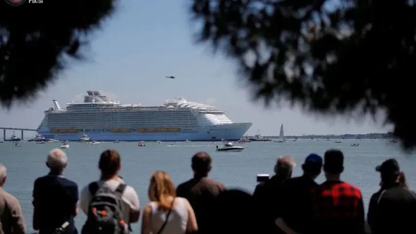 Лайнер "Гармонія мораў" адпраўляецца ў плаванне. Яго даўжыня 361 метр і ён з'яўляецца самым доўгім і вялікім круізным лайнерам у свеце. Ён пакінуў верф Сен-Назэр, каб зрабіць першае падарожжа ў Саўтгэмптан, адкуль ён пачне круіз.