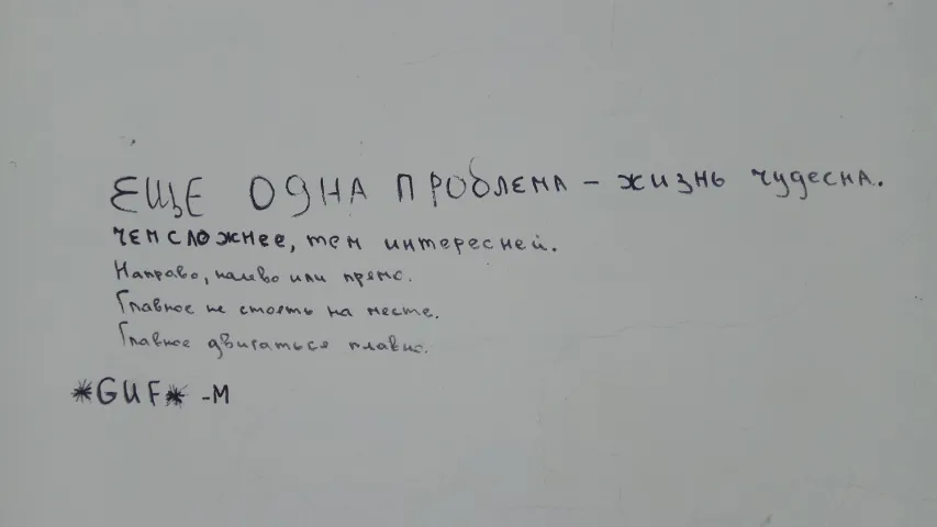 У панэльцы пракураныя лесвічныя клеткі, на сценах — тэксты расійскага рэпера Гуфа. Паштовыя скрыні не зачыняюцца, а чутнасць у пад'ездах вельмі жорсткая: стоячы на ліфтавай пляцоўцы, я чую, як недзе плача дзіця, а яшчэ недзе працуе мікрахвалеўка.