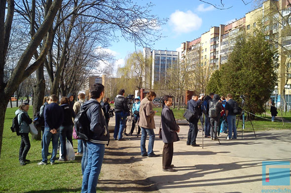 Як перадае карэспандэнт Еўрарадыё Арцём Мартыновіч з месца падзеяў, да суда прыйшло каля пару дзясяткаў чалавек. Сталі вядомыя акалічнасці затрымання журналістаў. Іх, нібыта, затрымалі 26 красавіка пасля "Чарнобыльскага шляху" непасрэдна каля РУУС Савецкага раёна. Хутчэй за ўсё, журналісты проста выконвалі сваю працу і спрабавалі даведацца лёс затрыманых на акцыі.