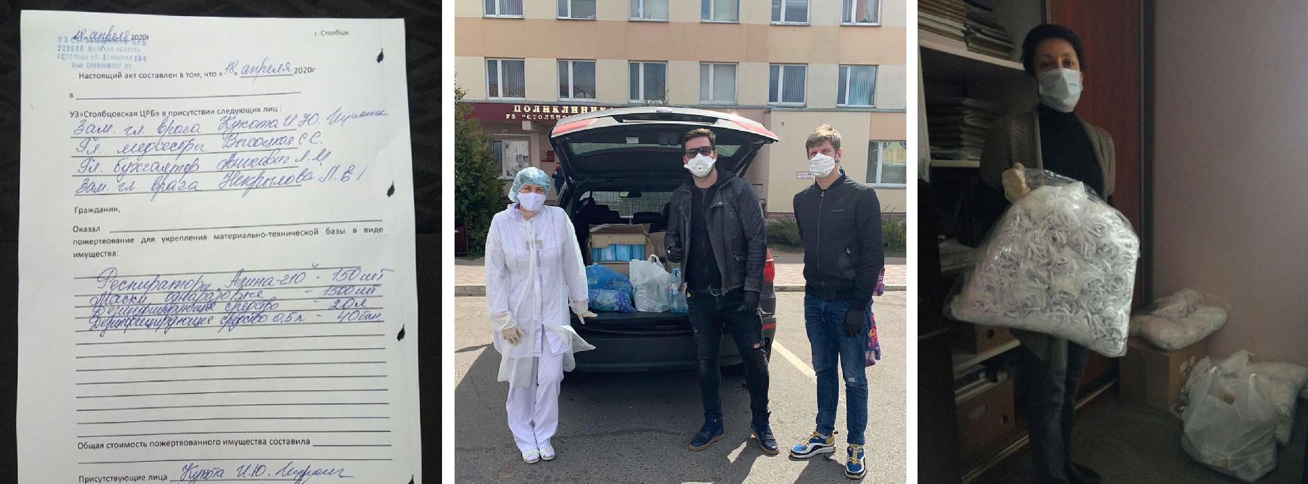Дапамогу Стаўбцоўскай ЦРБ аказваюць валанцёры з кампаніі #BYCOVID19 і ТАА "Моцны рэсурс". Дзякуючы крауд-платформе MolaMola дактарам адпраўленыя 2300 аднаразовых масак, 150 рэспіратараў "Аліна-210" са ступенню абароны ffp2, 20 літраў дэзінфектара, 40 слоікаў дэзінфекуючага сродку сродкаў па 0,5 літра, а таксама вада і ежа.