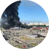 Дзве авіяцыйныя бомбы КАБ (важаць па 500 кілаграм) у суботу патрапілі ў Харкаўскі гіпермаркет "Эпіцэнтр". Узнік пажар, які ахапіў плошчу больш за 13,5 тысяч квадратных метраў.