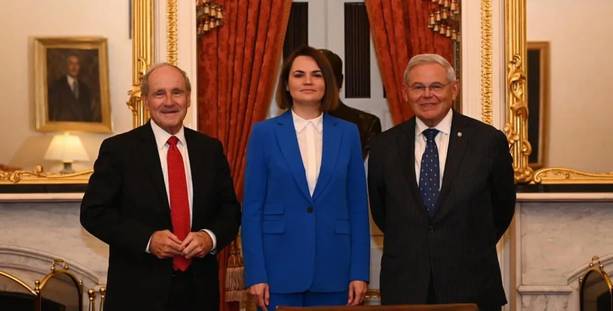 Ціханоўская абмеркавала з кіраўніком Камітэта Сената ЗША па міжнародных адносінах Робертам Менендэсам і яго камандай, як скаардынаваць падтрымку Беларусі паміж ЗША і ЕС. Паведамляецца, што Менендэс прымаў беларуску ў зале, дзе традыцыйна праходзяць прыёмы лідараў дзяржаў.