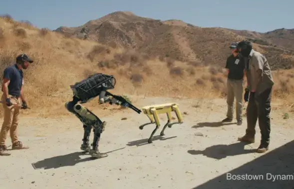 Відэа робата, які страляе па людзях і ўцякае з сабакам-робатам, выявілася фэйкам