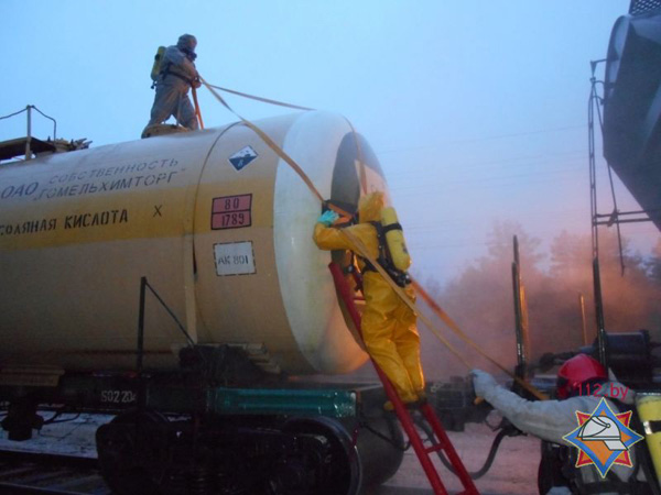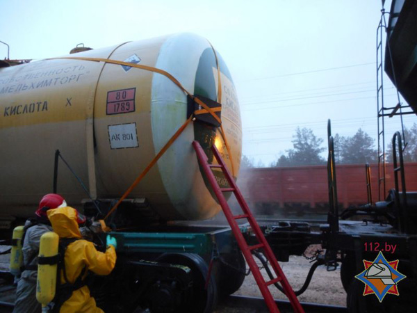 Каля 5-й гадзіны раніцы ратавальнікі ў Асіповічах атрымалі паведамленне, што на чыгуначнай станцыі пуцявы абходчык выявіў працечку салянай кіслаты з цыстэрны. Струмень кіслаты выцякаў з хуткасцю 20-25 літраў за гадзіну, паведамляе сайт ратавальнікаў. Працечка была выяўленая ў раёне зварнога шва цыстэрны.
