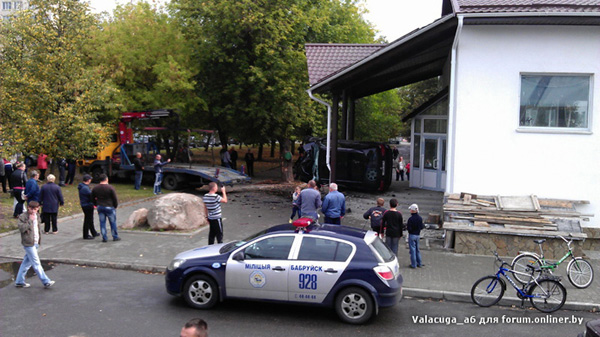Па словах відавочцаў, аўтамабіль праляцеў дзве пешаходныя дарожкі, поўную машын праезную частку, зялёную зону і прыпаркаваўся на прыступках. Тоўстыя бардзюры адляцелі метраў на 30.