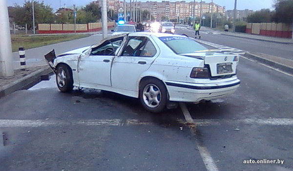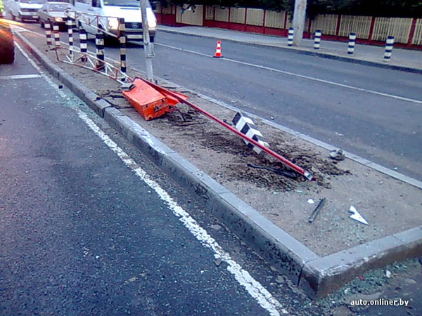 У Брэсце п'яны кіроўца BMW знёс тры шлагбаўмы і два святлафоры (фота)