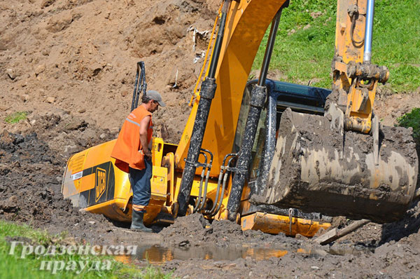 У цэнтры Гродна экскаватар патануў у гразі (фота)