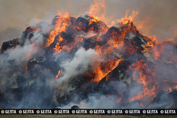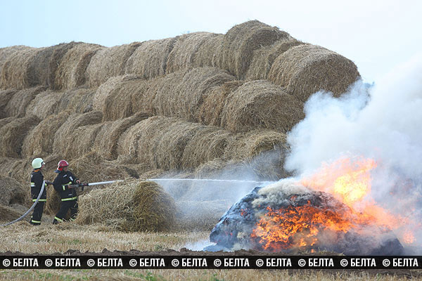 У Гродне на вялікім пажары згарэла 90 т саломы (фота)