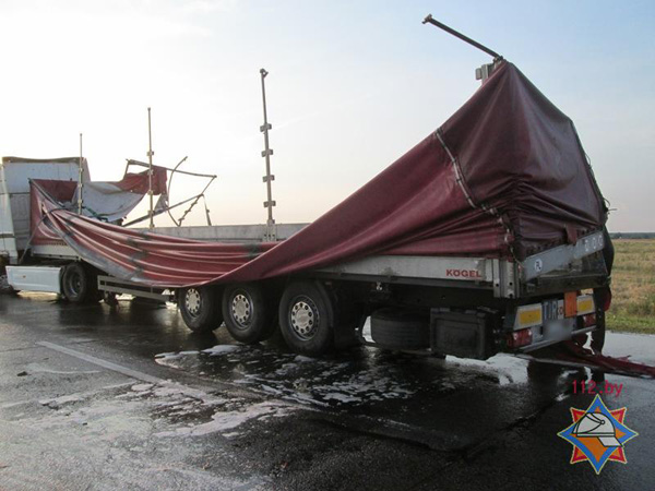 Як паведамляе прэс-служба выратавальнікаў, перакулілася фура з арылсульфакіслатой. Кіроўца седлавога цягача ДАФ, які належыць польскай фірме, не справіўся з кіраваннем. Рух па трасе быў перакрыты перакуленым аўтамабілем.
