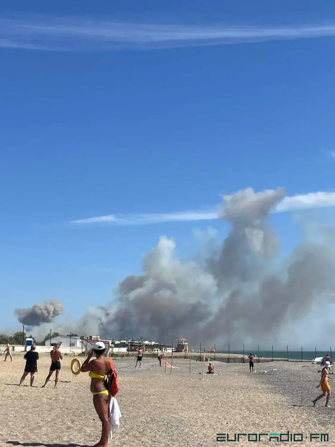 Кіраўніца Сакскага раёна Вікторыя Казьмірава, як перадае Бі-Бі-Сі, пацвердзіла, што выбухі адбыліся менавіта на аэрадроме: "У нас аэрадром выбухае. Выбухі на аэрадроме. Тут усе шыбы павыбівала".