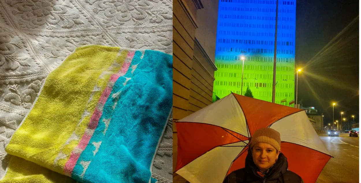 Ручнік палітвязню забаранілі за жоўта-сінія колеры. "Ручнік вытворчасці Рэчыцкага тэкстыльнага камбіната служыць нашай сям’і ўжо безліч гадоў, дый Дзяніс паспеў ім пакарыстацца ў вязніцы, пакуль у ім не заўважылі "палітычны падтэкст", не менш як паўгады палону", — напісала Вольга Івашына.