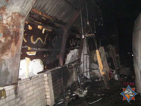 На месца здарэння адразу ж выехалі выратавальнікі. Бензарэзам яны ўскрылі браму гаража і пагасілі пажар.
