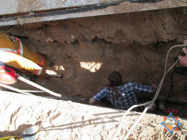 Мясцовыя выратавальнікі атрымалі паведамленне ад жанчыны. Па яе словах, на мужчыну абвалілася сцяна назіральнай ямы ў гаражы.