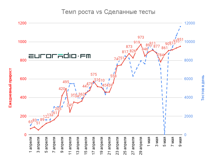 У Беларусі працягваецца рост выпадкаў каранавiруса. Як паведамляе ў Telegram прэс-служба Міністэрства аховы здароўя, іх ужо налічваецца 22 052 (+952 за апошнія суткі, на дзень раней — +933).