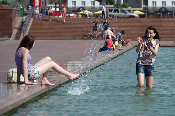 Жыхары Віцебска, у першую чаргу, дзеці, традыцыйна шукаюць паратунку ад спёкі, якая ўсталявалася апошнімі днямі, у гарадскіх фантанах.