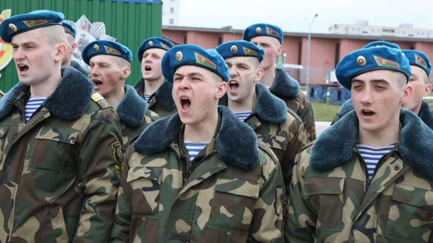 Віцебскія дэсантнікі выйшлі на плац, трымаючы аркушы з адным словам