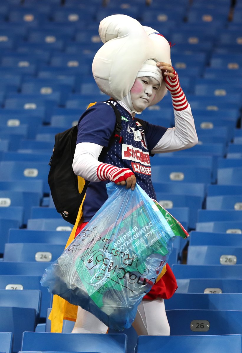 Увечары 2 ліпеня зборная Японіі прайграла камандзе Бельгіі ў 1/8 чэмпіянату свету па футболе. Нягледзячы на горыч паразы, пасля матчу японскія заўзятары прыбралі за сабой на трыбунах стадыёна ў Растове-на-Доне.