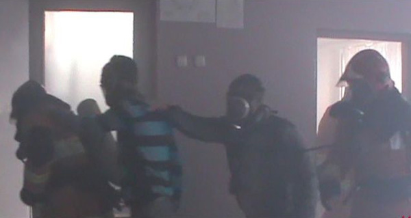 Як паведамляе прэс-служба МНС, задымленне было выяўленае дзяжурным работнікам навучальнай установы паміж другім і трэцім паверхамі. Для стварэння рэальных умоваў выкарыстоўвалася дымаўтваральнае прыстасаванне "Туман".
