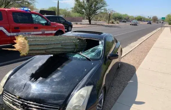 У Арызоне вялізны кактус пратараніў аўтамабіль (відэа)
