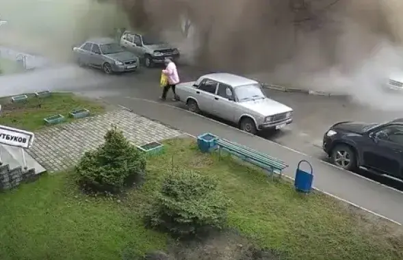 Пенсіянерку накрыла вялізная сцяна вады з-за прарыву вадаправода (відэа)