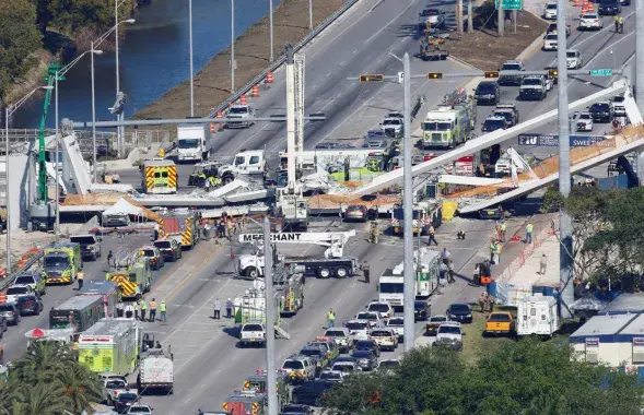 У Маямі абрынуўся пешаходны мост, ёсць загінулыя і параненыя