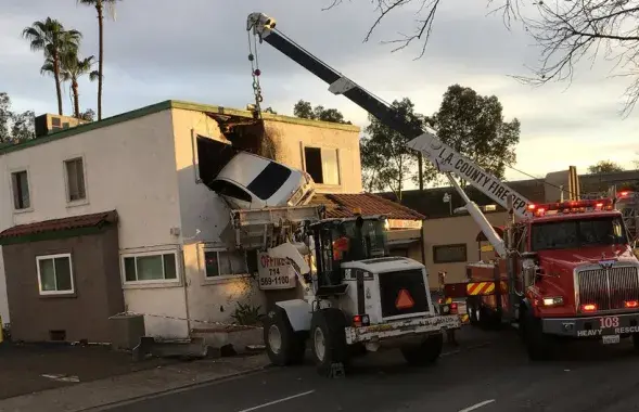 У ЗША аўтамабіль заляцеў на другі паверх будынка (фота, відэа)