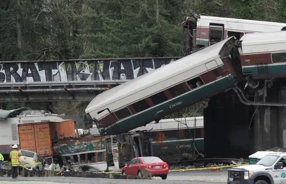 У ЗША вагоны цягніка зваліліся на аўтастраду, ёсць загінулыя