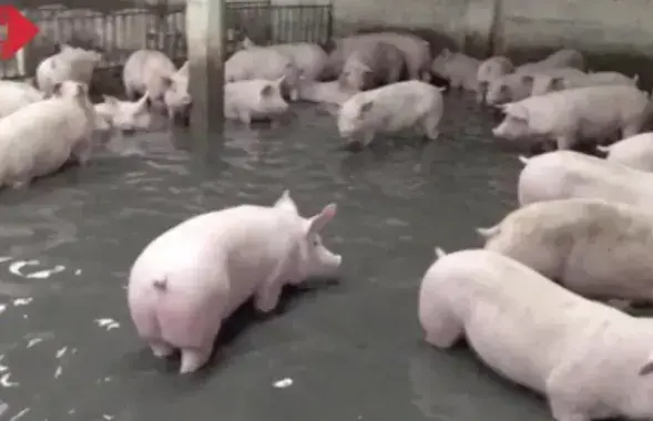 З’явілася відэа, як сотні свіней ратуюцца ад паводкі