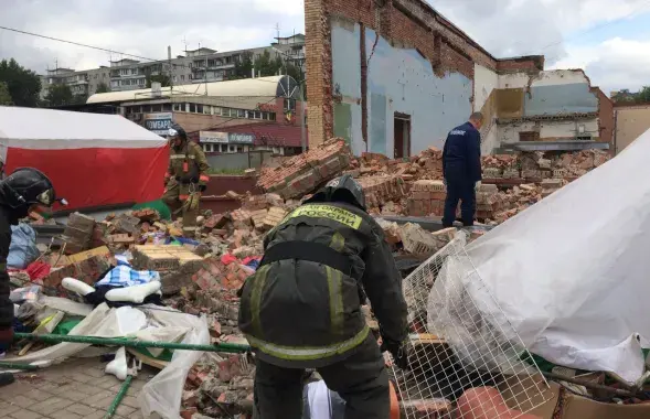 Сцяна звалілася на дзве гандлёвыя палаткі. Шпіталізавалі пяць чалавек, у тым ліку і адно дзіця.