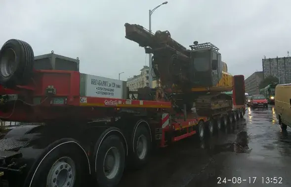 У Мінску цягач з буравой устаноўкай стралой пашкодзіў пуцеправод (фота)