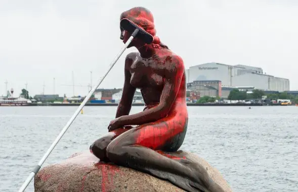 У Капенгагене аблілі чырвонай фарбай знакамітую статую Русалачкі. Фота