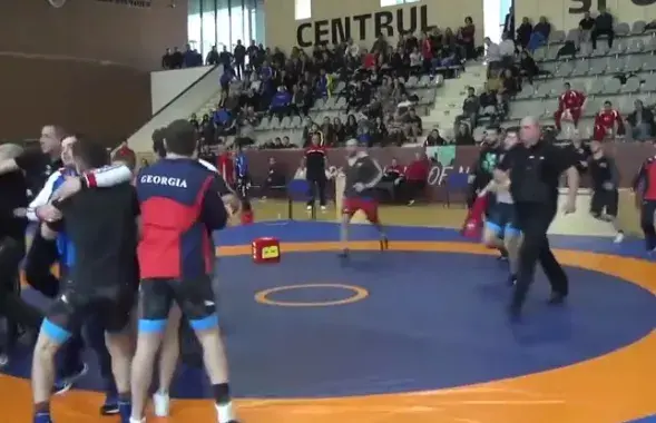 Паядынак расійскага і грузінскага барцоў скончыўся масавай бойкай (відэа)