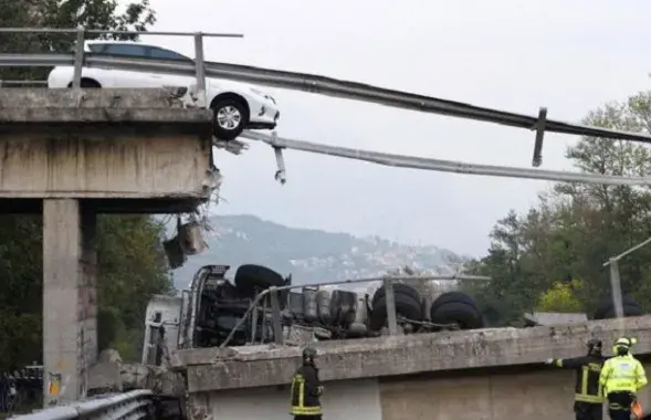 Відэа, як у Італіі мост абрынуўся на аўтамабіль