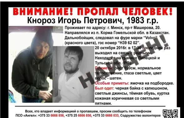 33-гадовы мінчанін знік на мяжы Ліпецкай і Тульскай абласцей — мяркуецца, што яго забілі, а затым спалілі цела.