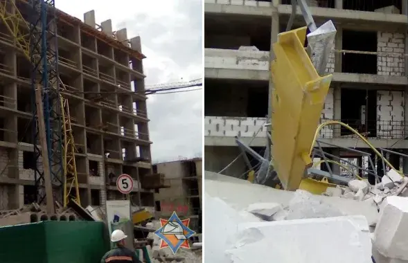 Будаўнік праляцеў 44 метры ў кабіне пад'ёмнага крана, які абрынуўся
